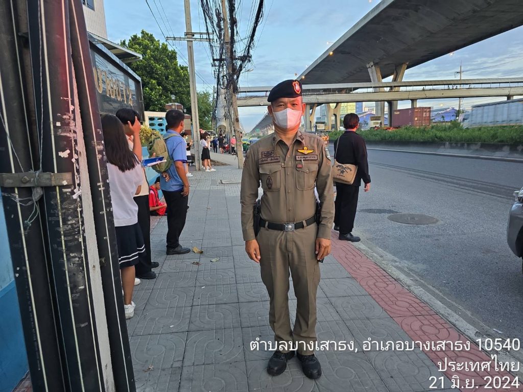 วันที่ (21 มิถุนายน 2567)เวลา 05.55 น. ภายใต้การอำนวยการของ พ.ต.อ.โสภณ มงคลโสภณรัตน์ ผกก.สภ.บางเสาธง พ.ต.ท.ราเชนทร์ ถนัดพจนามาตย์ รอง ผกก.ป.สภ.บางเสาธง โดยมี พ.ต.ต.สุรัตศักดิ์ เสียบไธสง สวป.(ชส. )ฯ (70) ว.4 ป้องกันเหตุ นักเรียนทะเลาะวิวาท(เหตุ 600) และป้องกันเหตุประทุษร้ายต่อทรัพย์ สถานที่ หน้า รพ.บางนา 2