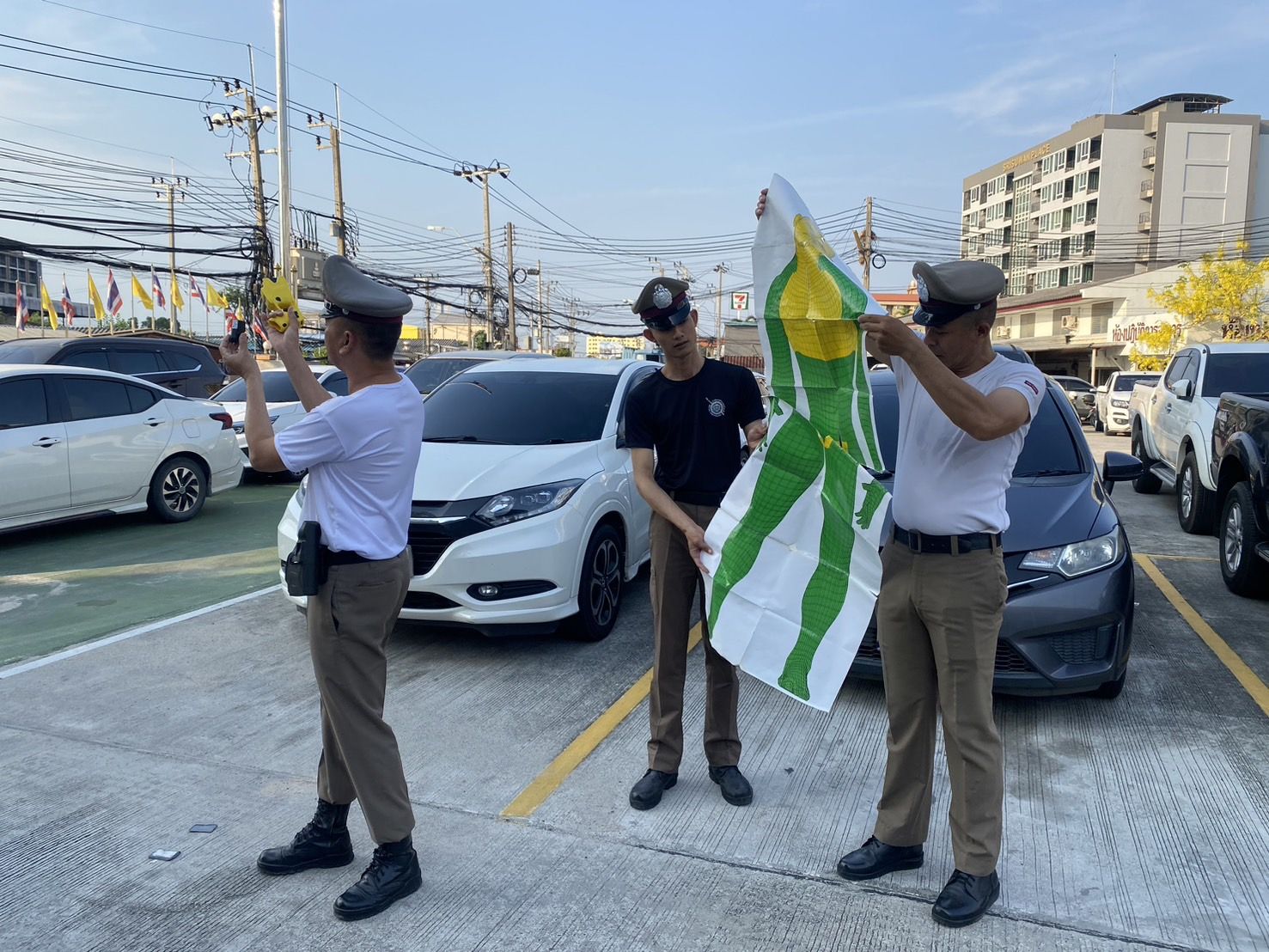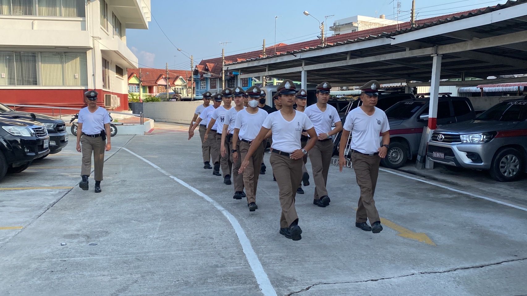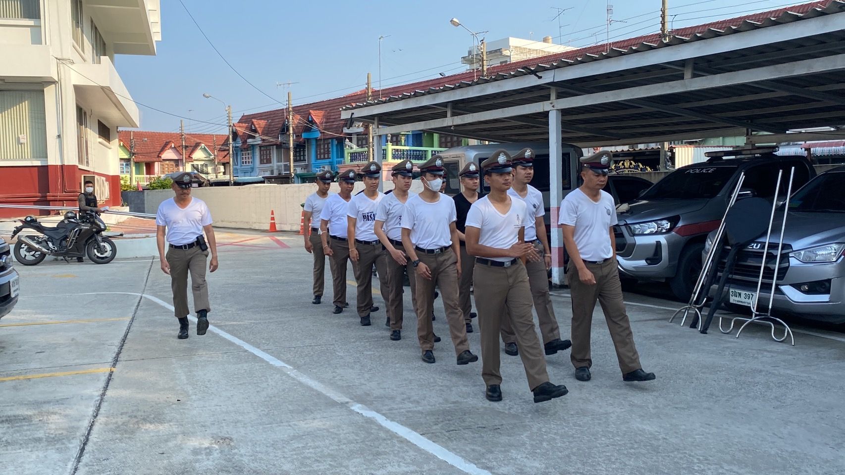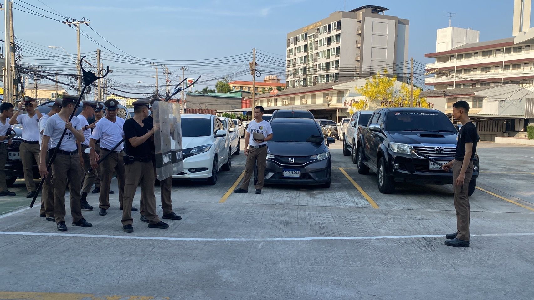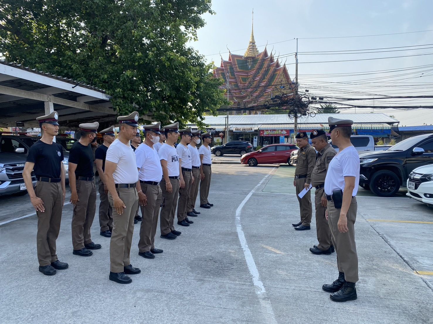 สถานที่ทำการฝึกแถว ลานฝึกหน้า สภ.บางเสาธง