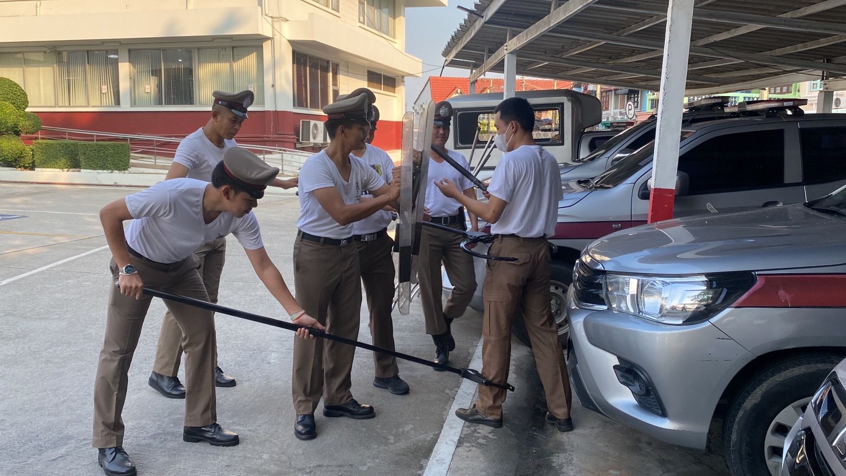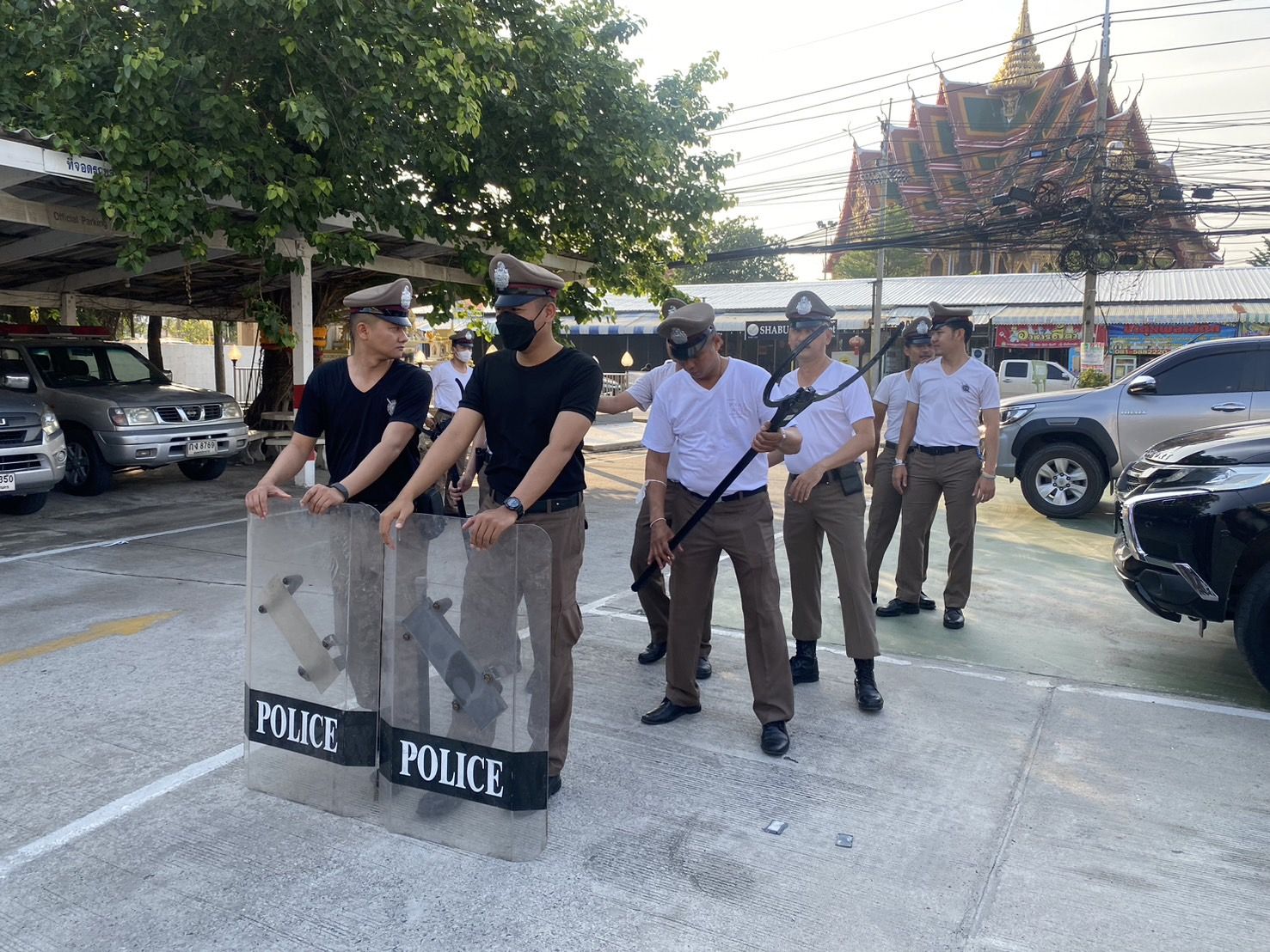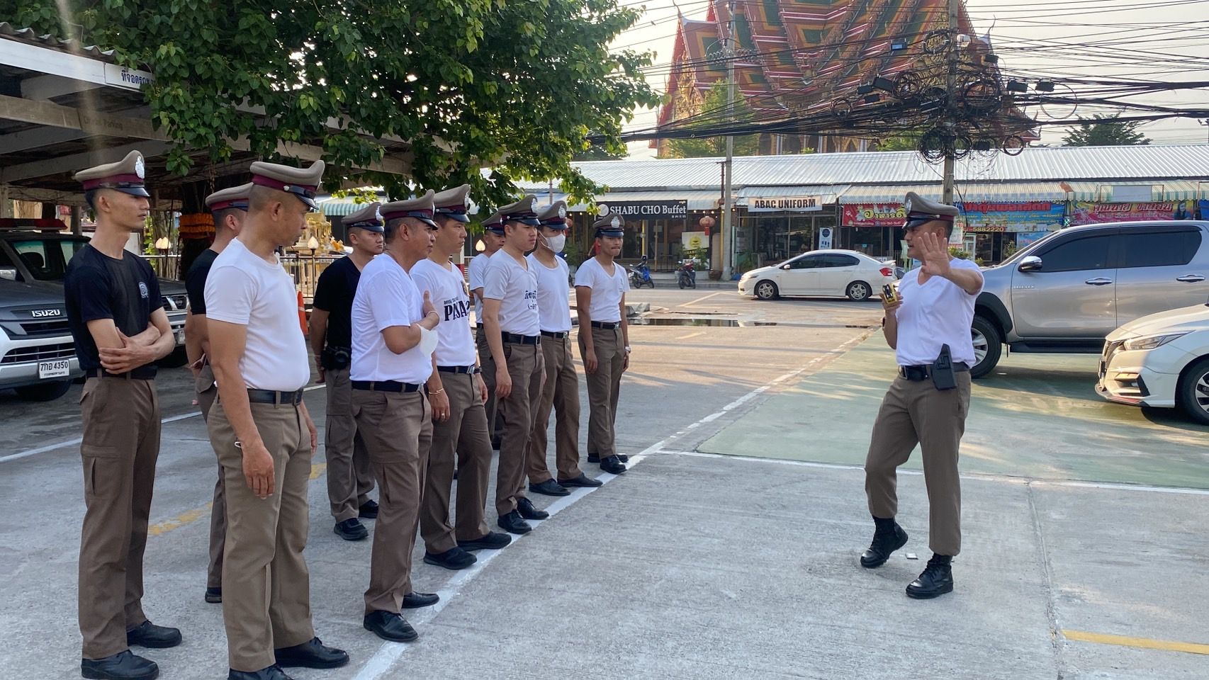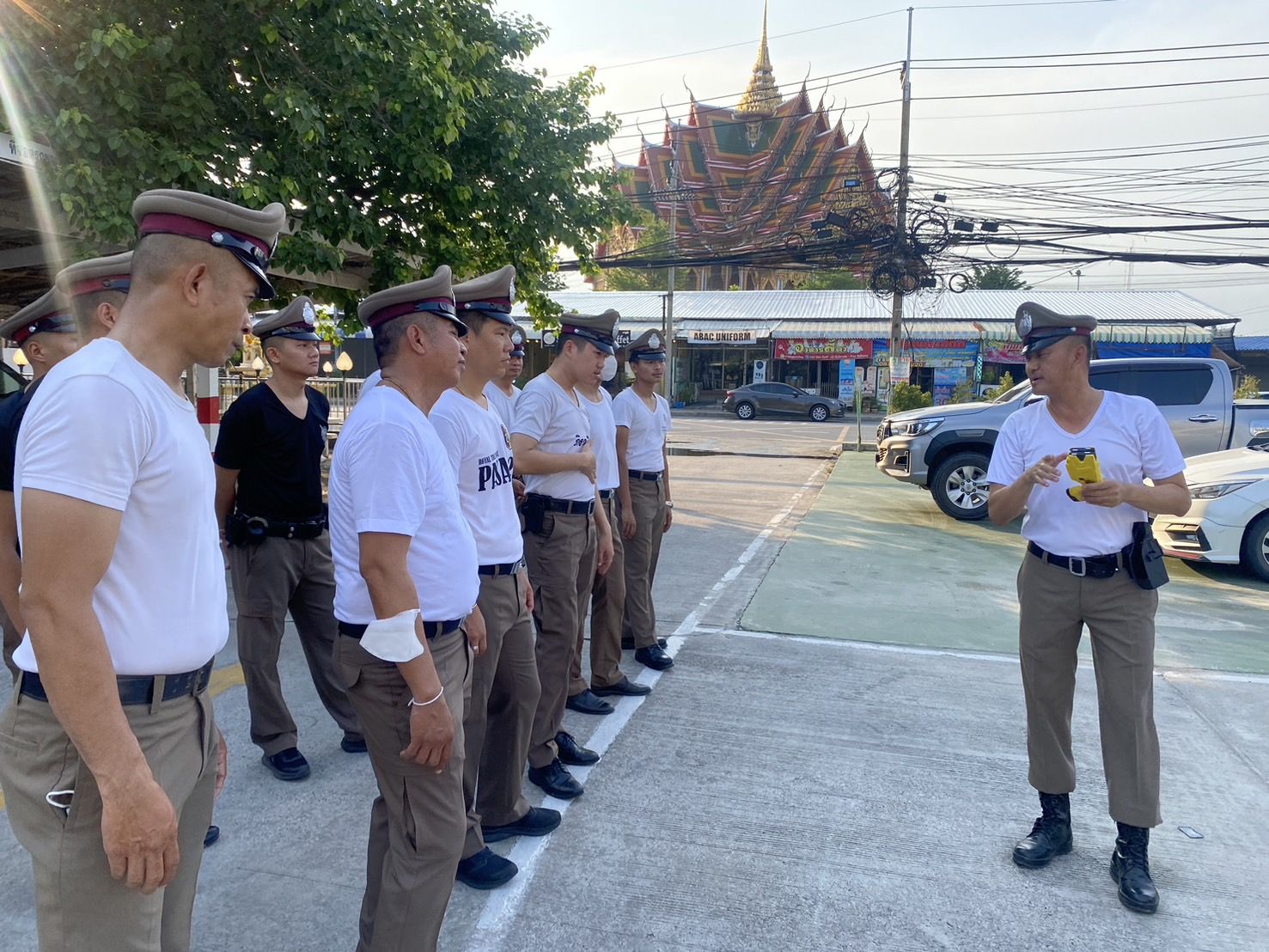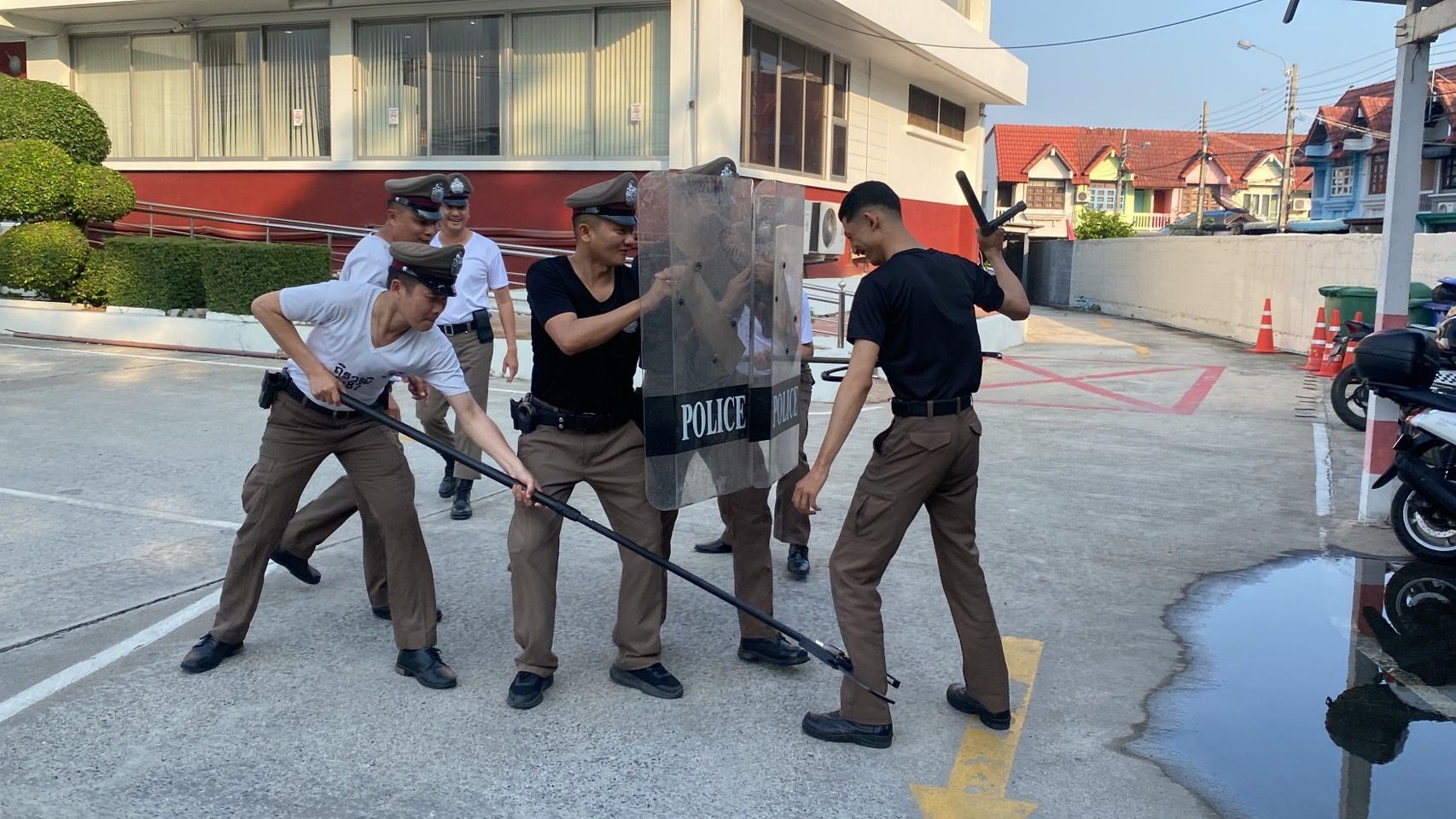 ฝึกประจำสัปดาห์ ให้กับข้าราชการตำรวจ สภ.บางเสาธง และฝึกยุทธวิธีตำรวจ การใช้ไม้ง่ามไฟฟ้า ปืนไฟฟ้าเข้าระงับเหตุบุคคลคลุ้มคลั่ง