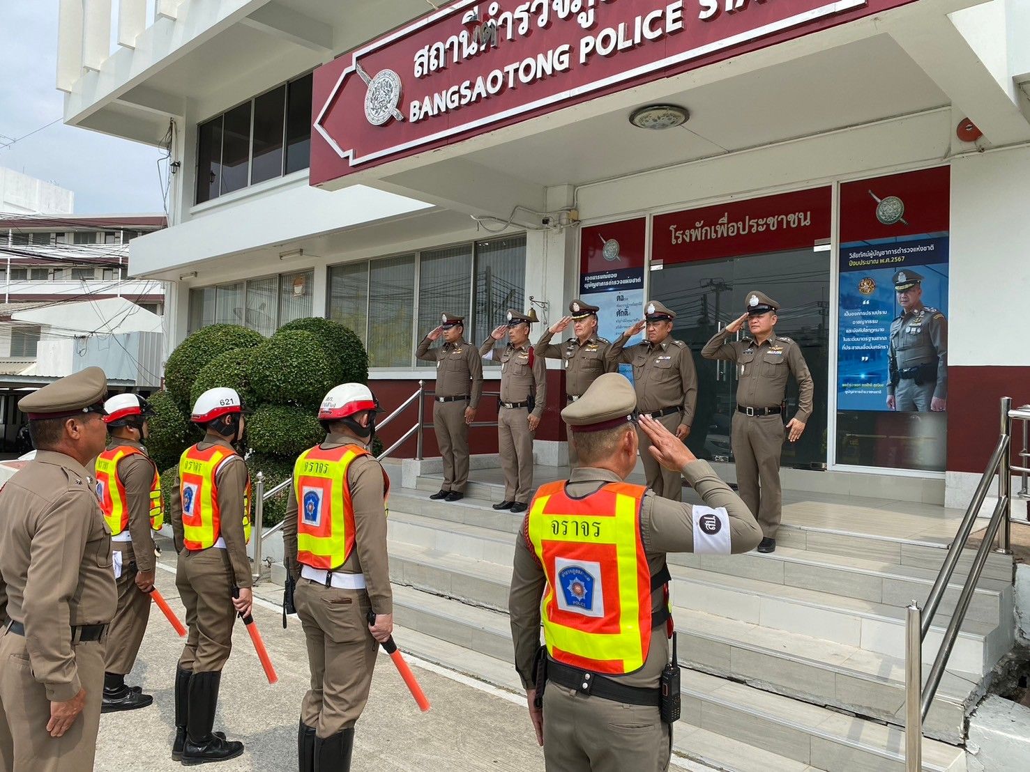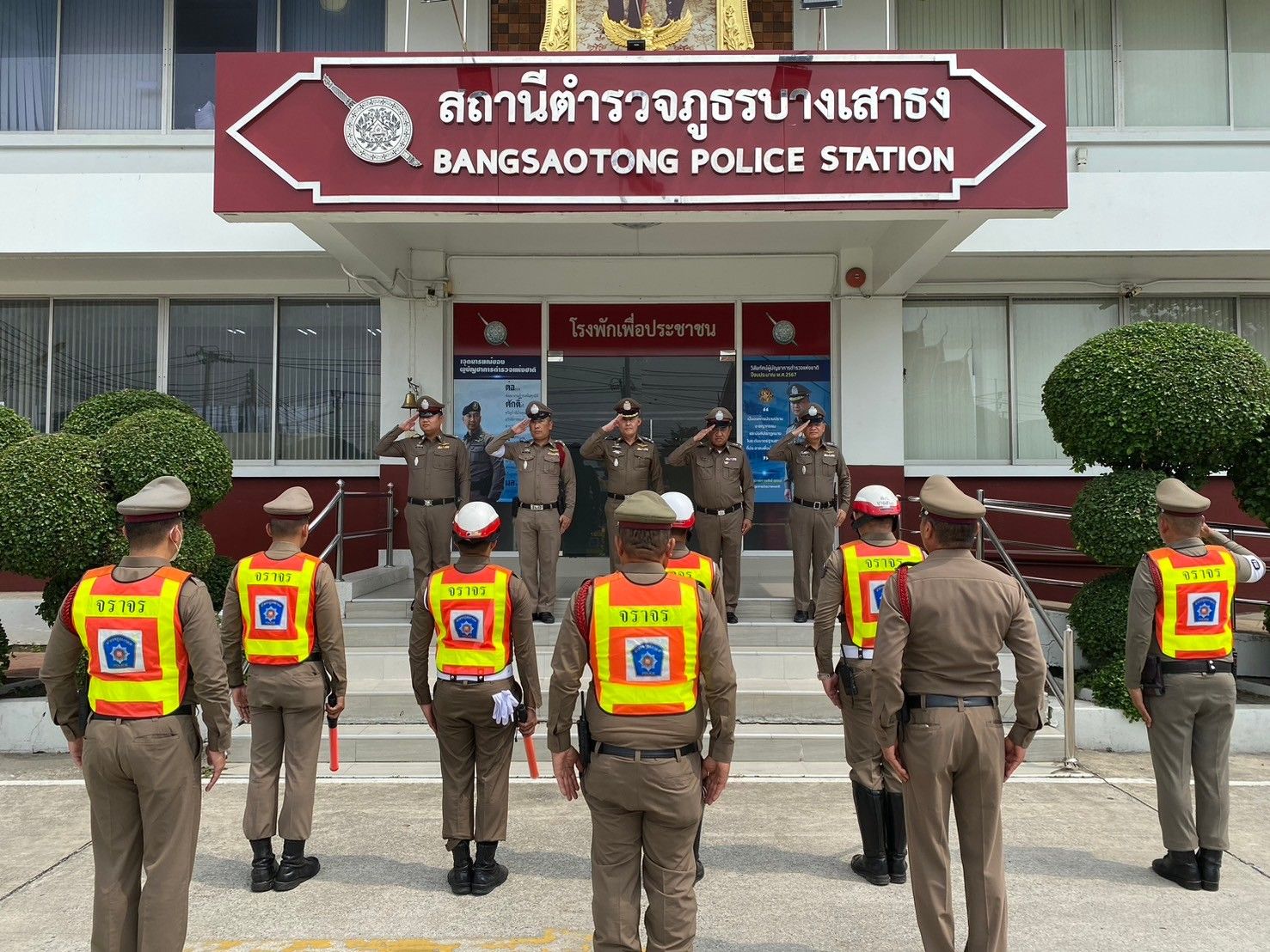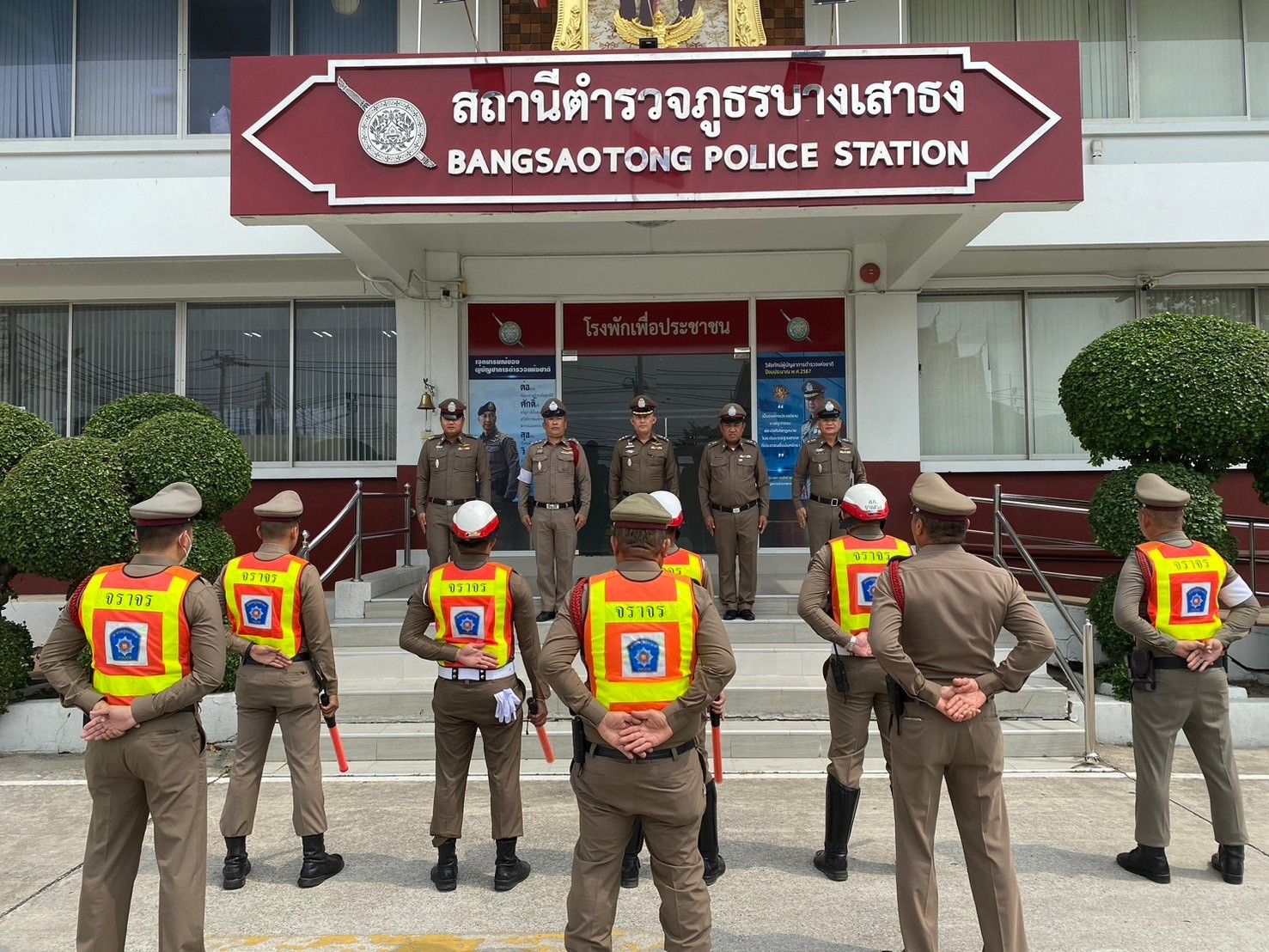 วันที่ 21 มี.ค.67 เวลา 14.00 น. พ.ต.อ.โสภณ มงคลโสภณรัตน์ ผกก.สภ.บางเสาธง พ.ต.ท.ราเชนทร์ ถนัดพจนามาตย์ รอง ผกก.ป.สภ.บางเสาธง พ.ต.ท.ธีรพันธ์ ทบสมัยสวป.สภ.บางเสาธง พ.ต.ต.อภิรักษ์ โพธิขำ สว.(สอบสวน)ฯ