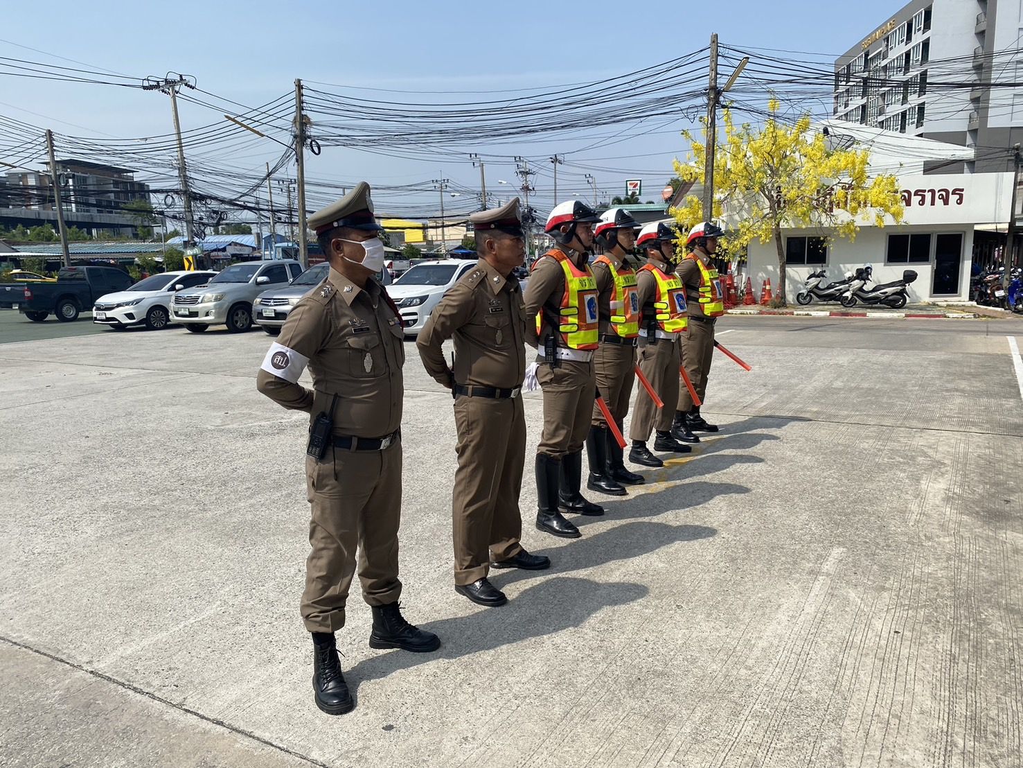 ประชุมชี้แจง ตรวจการแต่งกาย ทรงผม และความพร้อม ข้าราชการตำรวจในสังกัด ณ บริเวณหน้า สภ.บางเสาธง ภารกิจถวายความปลอดภัยและอำนวยการจราจร เส้นทางเสด็จ 944