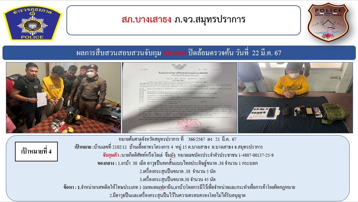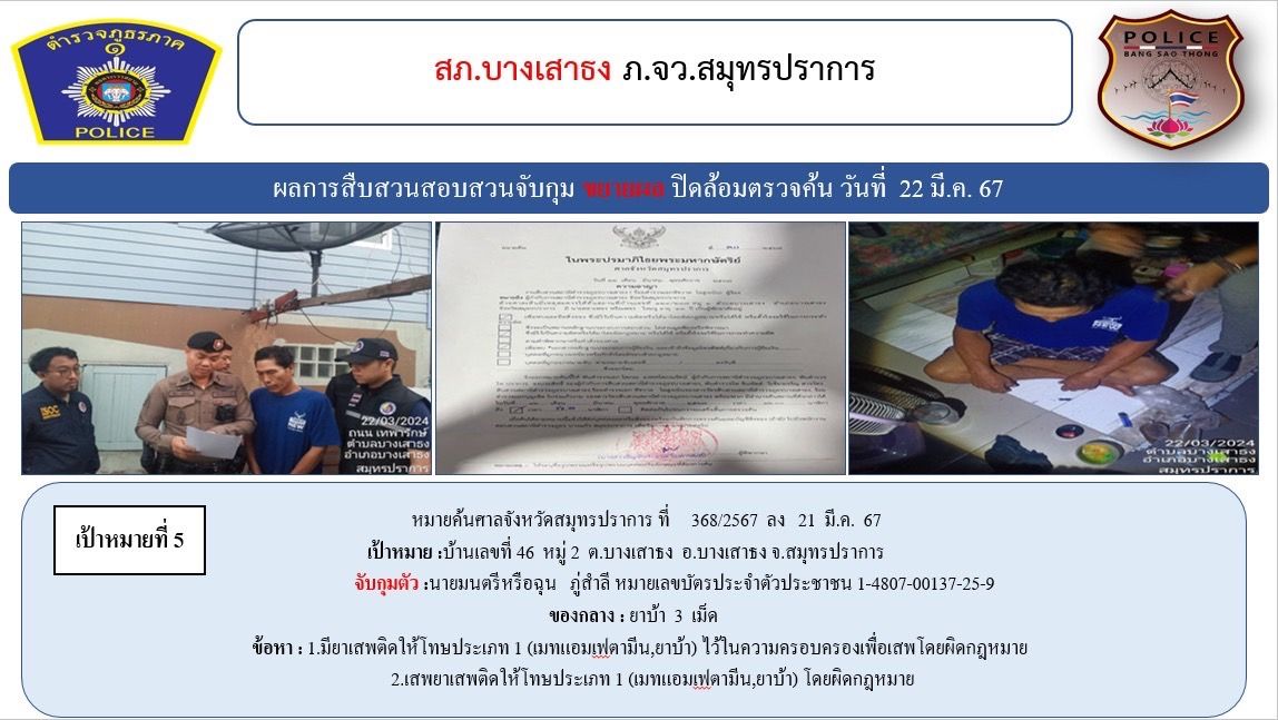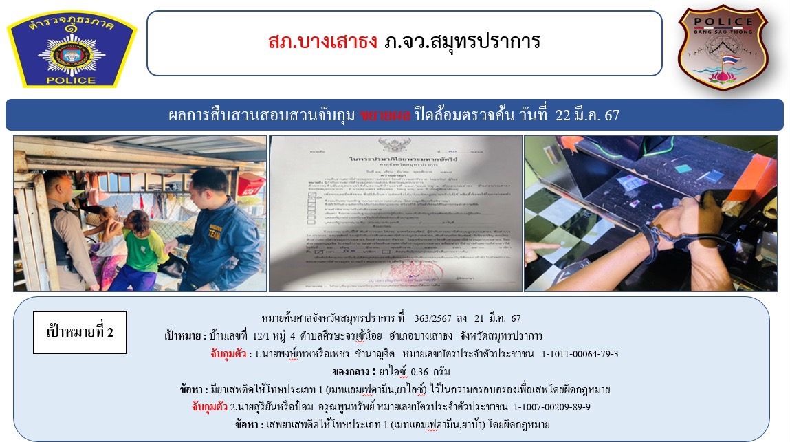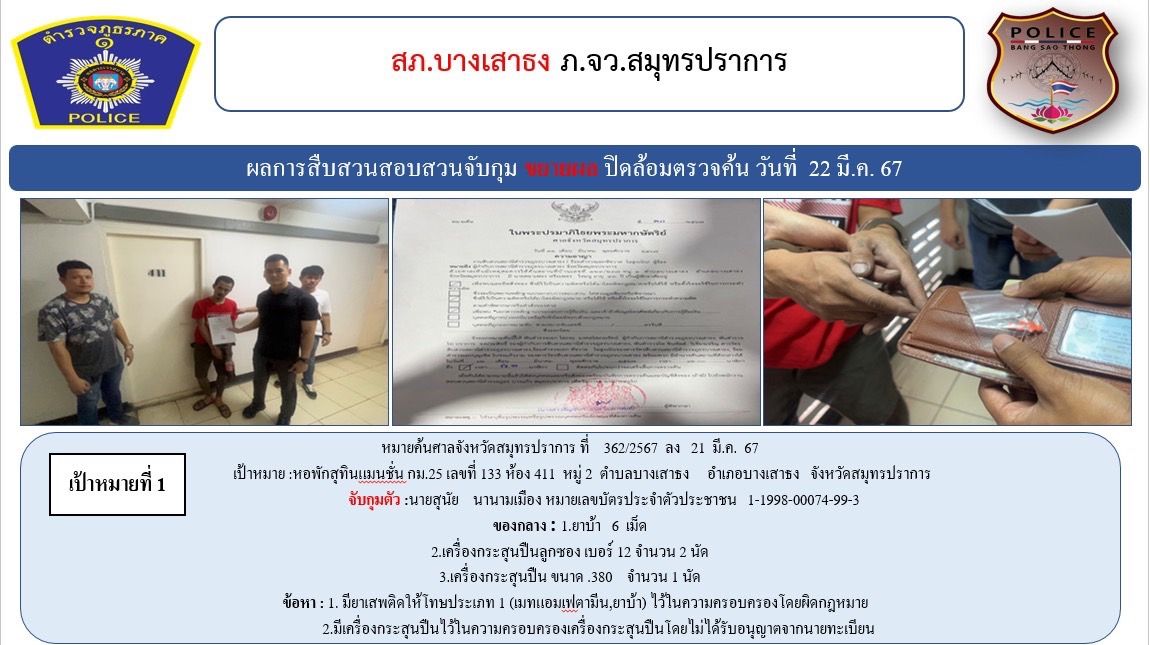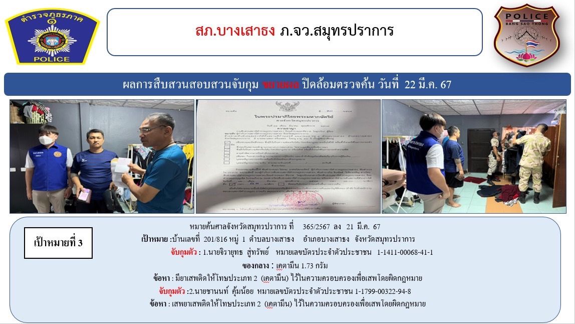 สภ.บางเสาธง ขอรายงานผลการระดมปิดล้อมตรวจค้นกวาดล้างยาเสพติด อาวุธปืนและความผิดอื่นๆ