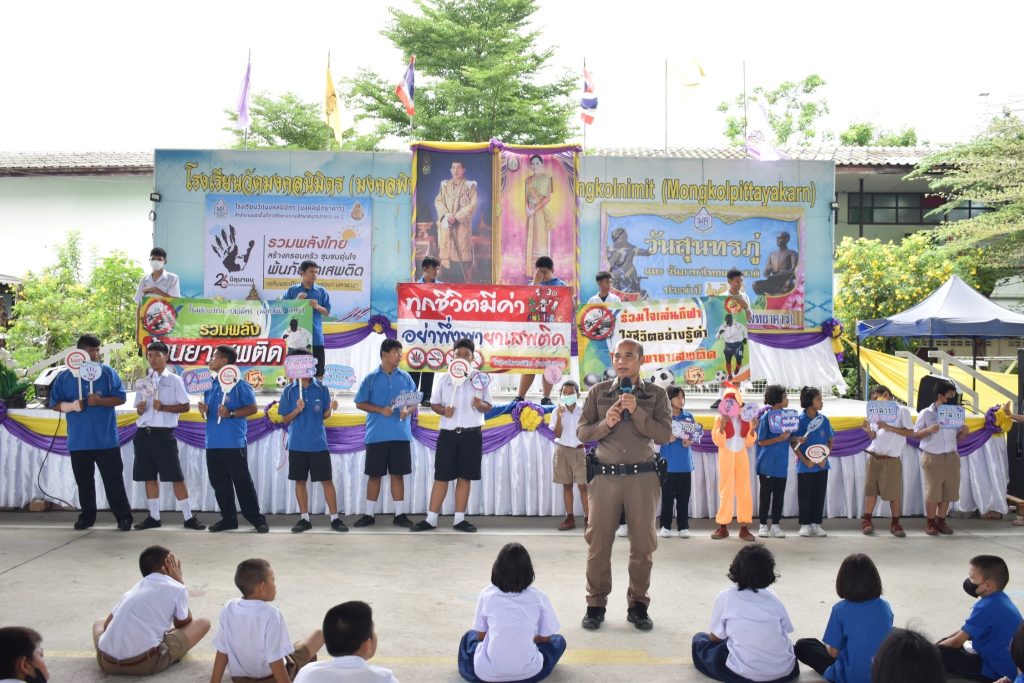 ผกก.สภ.บางเสาธง, พ.ต.ท.ราเชนทร์ ถนัดพจนามาตย์ รองผกก.ป.สภ.บางเสาธง โดยมี พ.ต.ต.สุรัตศักดิ์ เสียบไธสง สวป.(ชส.) สภ.บางเสาธง (70) พร้อมด้วย ด.ต.ธนิตพงศ์ ศักดิ์บวรวัชร์ ชมส.,ครูตำรวจแดร์ทำหน้าที่วิทยากรให้ความรู้ ความเข้าใจเกี่ยวกับยาเสพติด เนื่องในวัน ต่อต้านยาเสพติดโลก เพี่อให้พ้นภัยจากยาเสพติดอย่างยั่งยืน ประชาสัมพันธ์สร้างการรับรู้ให้แก่ประชาชน ผ่านสื่อสังคมออนไลน์ (Social Media) และช่องทางอื่นโรงเรียน วัดมงคลนิมิตร (มงคลพิทยาคาร)