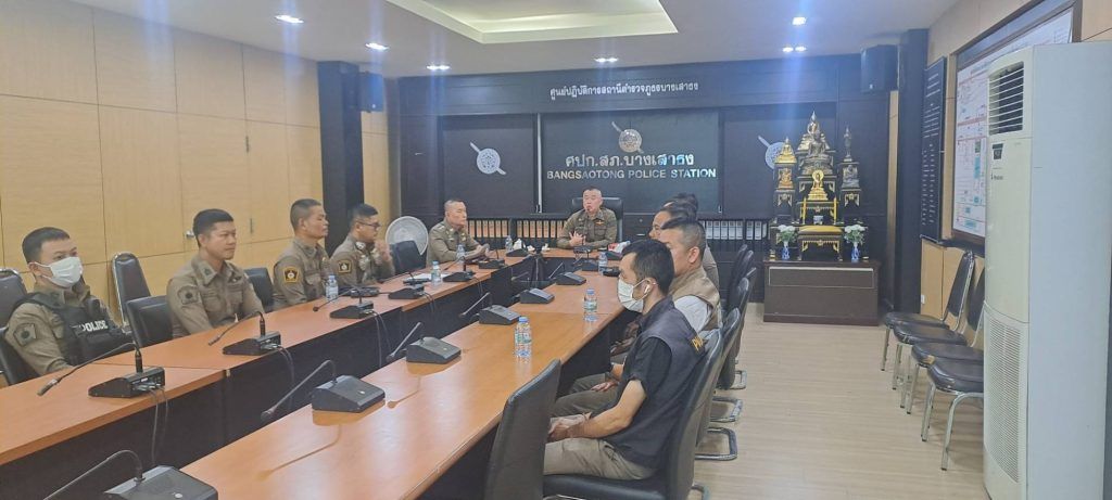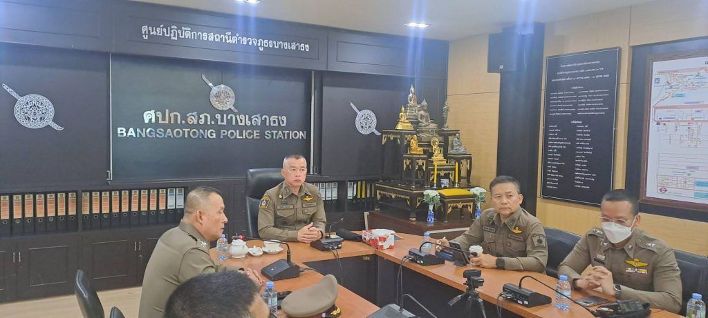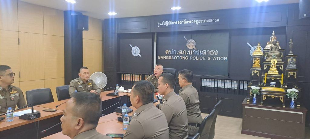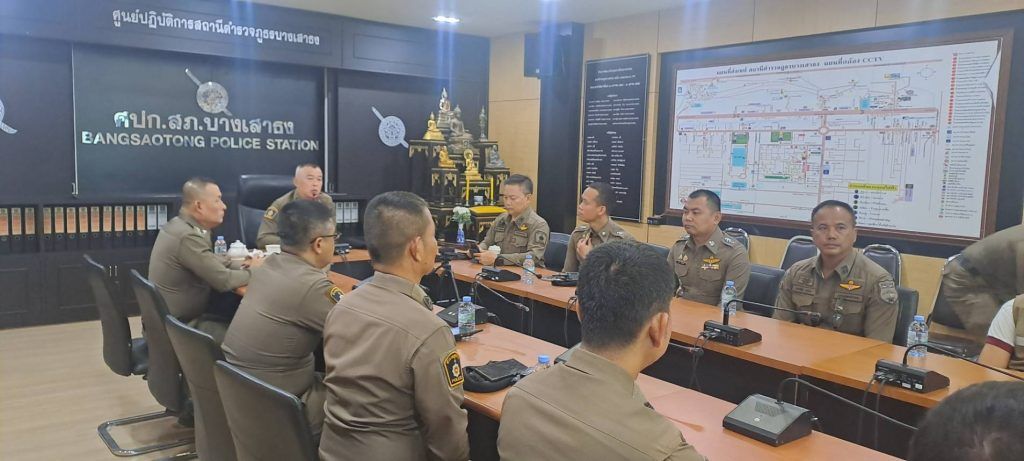 วันนี้ 18 เมษายน 2568 พล.ต.ต.โชคชัย งามวงศ์ รอง ผบช.ภาค 1 พ.ต.อ.นิรันดร์ ปิตะกาศ รอง ผบก.ภ.จว.สมุทรปราการ พ.ต.อ.โสภณ มงคลโสภณรัตน์ ผกก.สภ.บางเสาธง พ.ต.ท.ศรายุทธ บุญแจ่ม รอง ผกก.ป.สภ.บางเสาธง พ.ต.ท.ชนสิทธิ์ เด็ดดวง รอง ผกก.สส.สภ.บางเสาธง ภ.จว.สมุทรปราการ โดย รอง ผบช.ภาค1 ประชุมเตรียมความพร้อมจุดที่มีประชาชนเล่นน้ำสงกรานต์ ของวันที่ 20 เม.ย.68 สภ.บางเสาธง