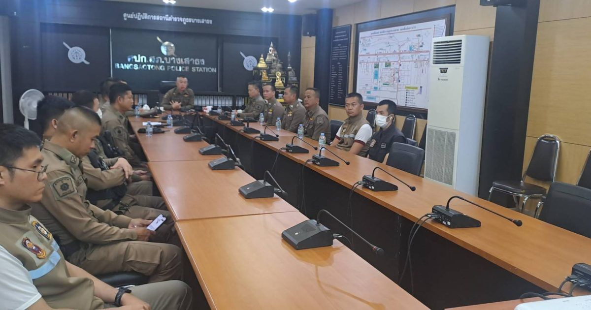 วันนี้ 18 เมษายน 2568 พล.ต.ต.โชคชัย งามวงศ์ รอง ผบช.ภาค 1 พ.ต.อ.นิรันดร์ ปิตะกาศ รอง ผบก.ภ.จว.สมุทรปราการ พ.ต.อ.โสภณ มงคลโสภณรัตน์ ผกก.สภ.บางเสาธง พ.ต.ท.ศรายุทธ บุญแจ่ม รอง ผกก.ป.สภ.บางเสาธง พ.ต.ท.ชนสิทธิ์ เด็ดดวง รอง ผกก.สส.สภ.บางเสาธง ภ.จว.สมุทรปราการ โดย รอง ผบช.ภาค1 ประชุมเตรียมความพร้อมจุดที่มีประชาชนเล่นน้ำสงกรานต์ ของวันที่ 20 เม.ย.68 สภ.บางเสาธง