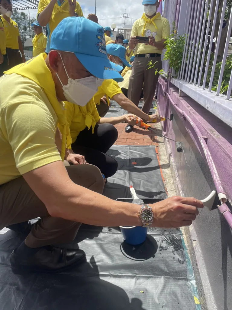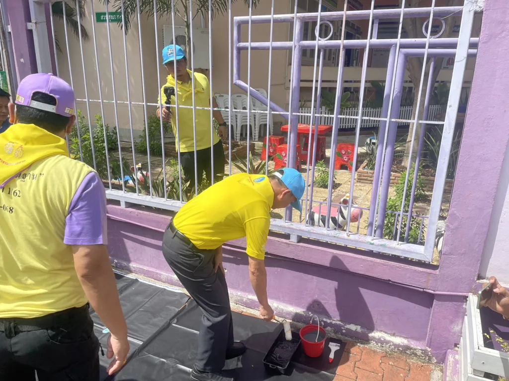 พร้อมด้วยข้าราชการตำรวจสถานีตำรวจบางเสาธง และข้าราชการหน่วยงานอื่นๆและประชาชนจิตอาสา รวมประมาณ 200 คน ร่วมกิจกรรมจิตอาสาพัฒนา เราทำความดี ด้วยหัวใจ เนื่องในวันอานันทมหิดล ทำกิจกรรมทาสีปรับปรุงภูมิทัศน์ บริเวณ เทศบาลตำบลบางเสาธง จ.สมุทรปราการ