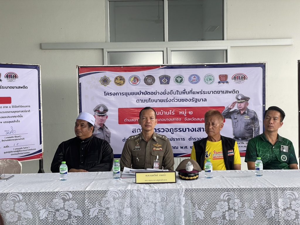 👮พ.ต.ต.สุรัตศักดิ์ เสียบไธสง สวป.ชส.สภ.บางเสาธง พร้อมกำลังชุดปฏิบัติการชุมชนยั่งยืน โดยมี ผู้นำชุมชน คณะกรรมการชุมชน ประธานคุ้ม คณะกรรมการคุ้ม ,ฝ่ายปกครอง และสาธารณสุข เข้าร่วมแลกเปลี่ยนความคิด พร้อมให้คำแนะนะ และข้อเสนอแนะตามโครงการชุมชนบำบัดอย่างยั่งยืนฯ เพื่อให้เป็นไปตามแนวทางการดำเนินโครงการชุมชนบำบัด ฯ