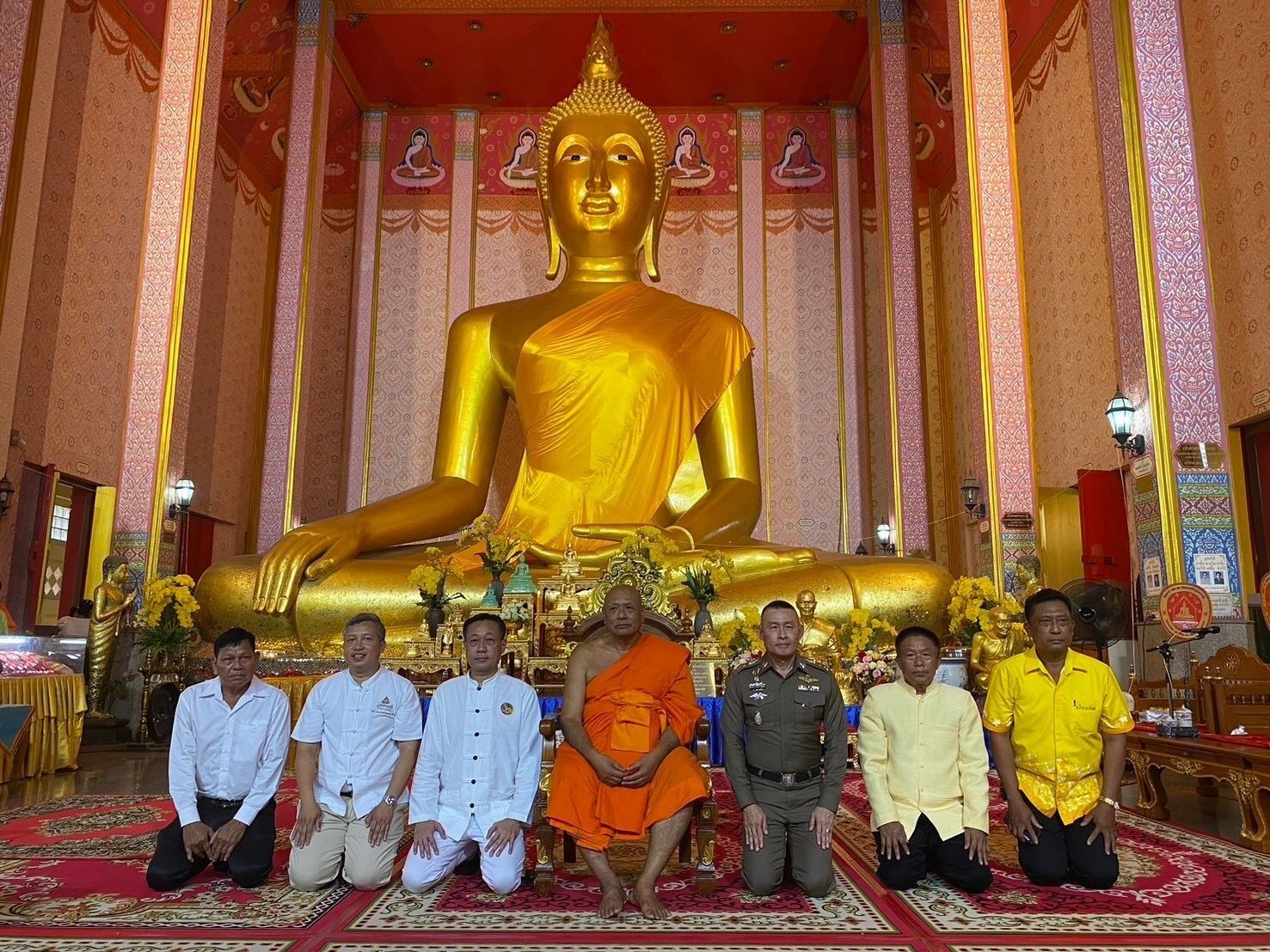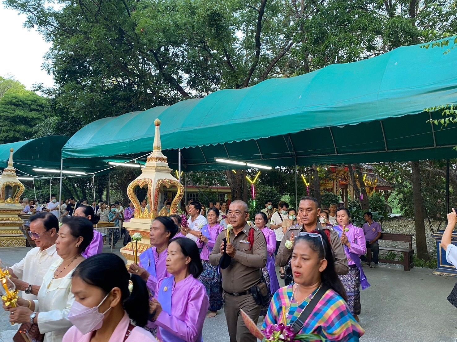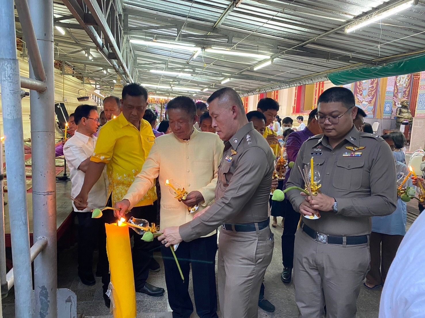 จากนั้นเวลาประมาณ 17.00 น. นายสุจินต์ วาจากิจ รอง ผู้ว่าราชการจังหวัดสมุทรปราการ ประธานในพิธี,นายศรายุทธ์ ไชยกอง นายอำเภอบางเสาธง,พ.ต.อ.โสภณ มงคลโสภณรัตน์ ผกก.สภ.บางเสาธงพร้อมข้าราชการตำรวจ สภ.บางเสาธง,นายพยนต์ เอี่ยมสะอาด นายก อบต.ศีรษะจรเข้น้อย และประชาชนในพื้นที่ ได้ร่วมพิธีห่มผ้าพระประธานองค์หลวงพ่อเขียวสุโขพุทโธภควา และร่วมกิจกรรมเดินเวียนเทียน เนื่องในวันสำคัญทางพุทธศาสนา วันมาฆบูชา ณ วัดหัวคู้ ต.ศีรษะจรเข้น้อย อ.บางเสาธง จ.สมุทรปราการ