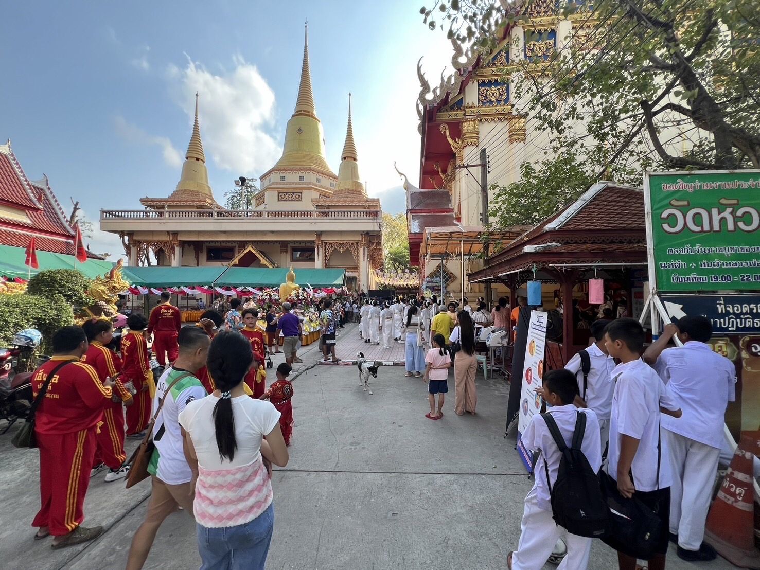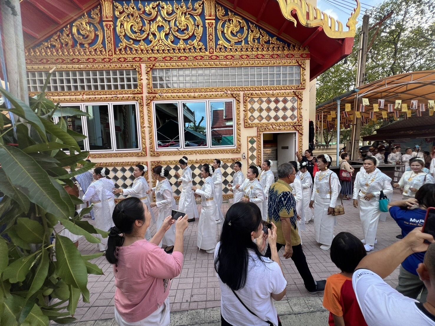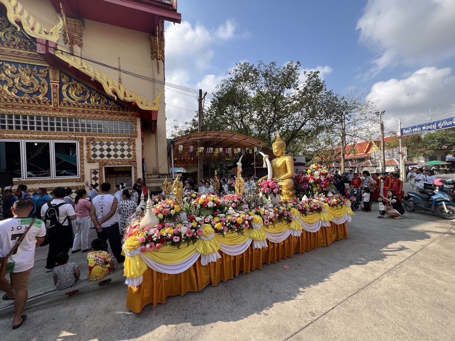 จากนั้นเวลาประมาณ 17.00 น. นายสุจินต์ วาจากิจ รอง ผู้ว่าราชการจังหวัดสมุทรปราการ ประธานในพิธี,นายศรายุทธ์ ไชยกอง นายอำเภอบางเสาธง,พ.ต.อ.โสภณ มงคลโสภณรัตน์ ผกก.สภ.บางเสาธงพร้อมข้าราชการตำรวจ สภ.บางเสาธง,นายพยนต์ เอี่ยมสะอาด นายก อบต.ศีรษะจรเข้น้อย และประชาชนในพื้นที่ ได้ร่วมพิธีห่มผ้าพระประธานองค์หลวงพ่อเขียวสุโขพุทโธภควา และร่วมกิจกรรมเดินเวียนเทียน เนื่องในวันสำคัญทางพุทธศาสนา วันมาฆบูชา ณ วัดหัวคู้ ต.ศีรษะจรเข้น้อย อ.บางเสาธง จ.สมุทรปราการ