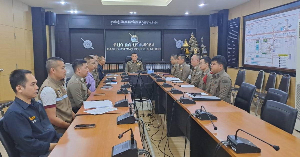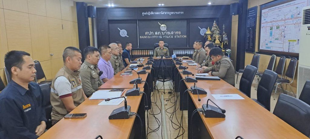 พ.ต.อ.โสภณ มงคลโสภณรัตน์ ผกก.สภ.บางเสาธง,พ.ต.ท.ชนสิทธิ์ เด็ดดวง รอง ผกก.สส.สภ.บางเสาธง,พ.ต.ท. เรวัติ พันกา รอง ผกก (สอบสวน) สภ.บางเสาธง,พ.ต.ท.วีระชนษ์ วงษ์นคร สวป.สภ.บางเสาธง,พ.ต.ท.สันติ พงษ์สระพัง สว.อก.สภ.บางเสาธง,พ.ต.ท. ทรงพล แสงไพโรจน์ สว.(สอบสวน)ทนท.หน.จร.สภ.บางเสาธง,พ.ต.ต.สุรัตศักดิ์ เสียบไธสง สวป.(ชส).สภ.บางเสาธง พร้อมด้วยข้าราชการตำรวจ สภ.บางเสาธง