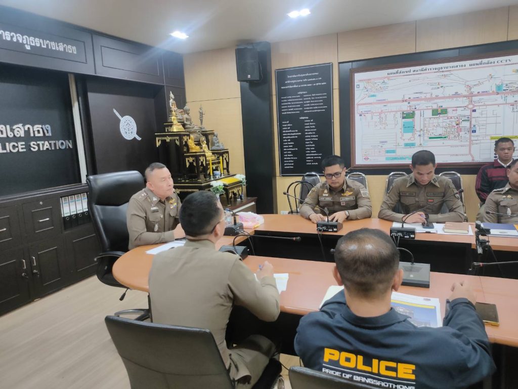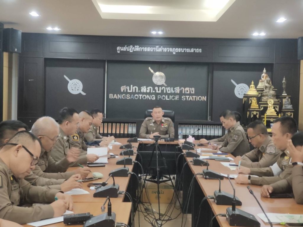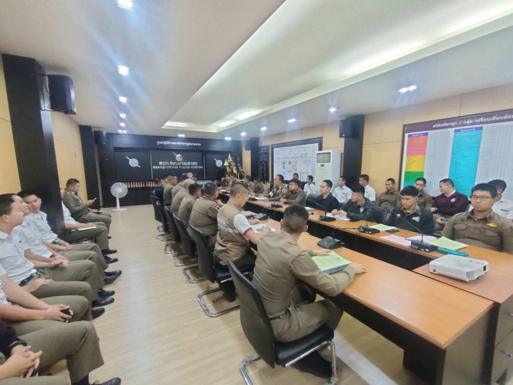 วันที่ (11มี.ค.68 )เวลา 13.30น. พ.ต.อ.โสภณ มงคลโสภณรัตน์ ผกก.สภ.บางเสาธง พ.ต.ท.ศรายุทธ บุญแจ่ม รอง ผกก.ป.สภ.บางเสาธง พ.ต.ท.ชนสิทธิ์ เด็ดดวง รอง ผกก.สส.สภ.บางเสาธง พ.ต.ท.ทรงพล แสงไพโรจน์ สว.(สอบสวน)ทนท.หน.จร..สภ.บางเสาธง พ.ต.ท.วีระชนษ์ วงษ์นคร สวป.สภ.บางเสาธง พ.ต.ท.สันติ พงศ์สระพัง สว.อก.สภ.บางเสาธง พร้อมด้วยข้าราชการตำรวจ สภ.บางเสาธงและนรต.ฝึกงาน 5นาย,นสต.ฝึกงาน 20 นาย ร่วมประชุมประจำสัปดาห์เพื่อขับเคลื่อนการปฏิบัติงานตามนโยบายและข้อสั่งการของผู้บังคับบัญชา รวมทั้งติดตามผลการปฏิบัติITA กำชับเรื่องการใช้ทรัพย์สินสิ่งของทางราชการ และของกลางในคดีอาญา ผลการปฏิบัติและวิเคราะห์อาชญากรรมที่เกิดในรอบสัปดาห์ เพื่อปรับแนวทางการป้องกันอาชญากรรมในพื้นที่ ณ ห้องประชุม ศปก.ชั้น 3