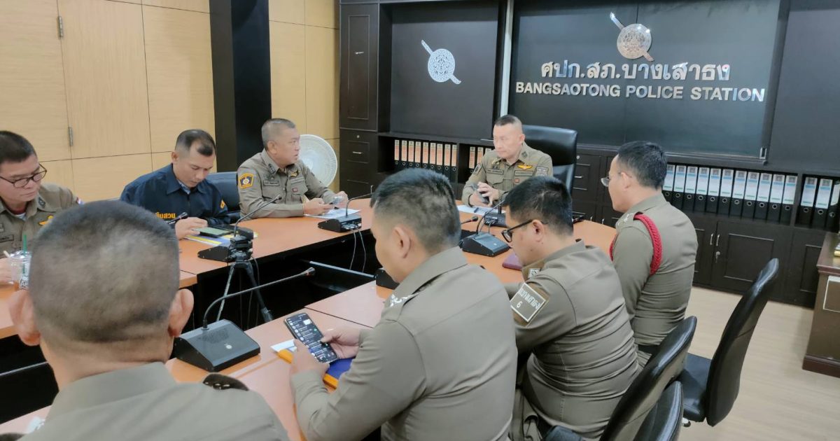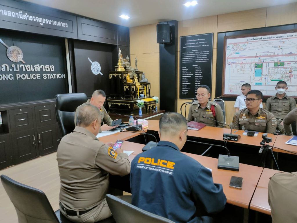 วันที่(18 ก.พ.68 )เวลา 10.30น. พ.ต.อ.โสภณ มงคลโสภณรัตน์ ผกก.สภ.บางเสาธง พ.ต.ท.ราเชนทร์ ถนัดพจนามาตย์ รอง ผกก.ป.สภ.บางเสาธง พ.ต.ท.ธีระพันธ์ ทบสมัย สวป.สภ.บางเสาธง