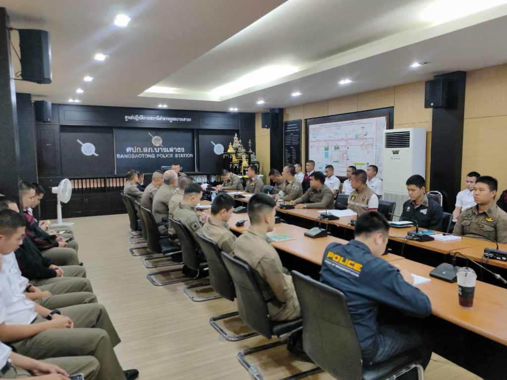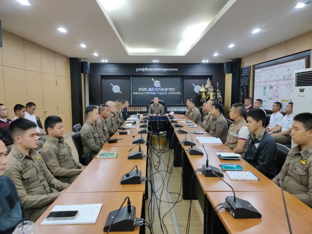 วันที่(25 ก.พ.68 )เวลา 10.30น.พ.ต.อ.โสภณ มงคลโสภณรัตน์ ผกก.สภ.บางเสาธง พ.ต.ท.เรวัติ พันกา รอง ผกก.(สอบสวน)สภ.บางเสาธง พ.ต.ท.ชนสิทธิ์ เด็ดดวง รอง ผกก.สส.สภ.บางเสาธง พ.ต.ท.ธีระพันธ์ ทบสมัย สวป.สภ.บางเสาธง พร้อมด้วยข้าราชการตำรวจ สภ.บางเสาธงและนรต.ฝึกงาน 5นาย,นสต.ฝึกงาน 20 นาย ร่วมประชุมประจำสัปดาห์เพื่อขับเคลื่อนการปฏิบัติงานตามนโยบายและข้อสั่งการของผู้บังคับบัญชา และกำชับเรื่องของกลาง ซึ่งได้แต่งคณะกรรมการไปแล้ว ทำการคัดแยกประเภทรถยนต์และรถจักรยานยนต์ของกลางที่ศาลมีคำพิพากษาริบ ให้ตกเป็นของแผ่นดิน เพื่อจำหน่ายและทำลายตามระเบียบ รวมทั้งติดตามผลการปฏิบัติITA ผลการปฏิบัติและวิเคราะห์อาชญากรรมที่เกิดในรอบสัปดาห์ เพื่อปรับแนวทางการป้องกันอาชญากรรมในพื้นที่ ณ ห้องประชุม ศปก.ชั้น 3
