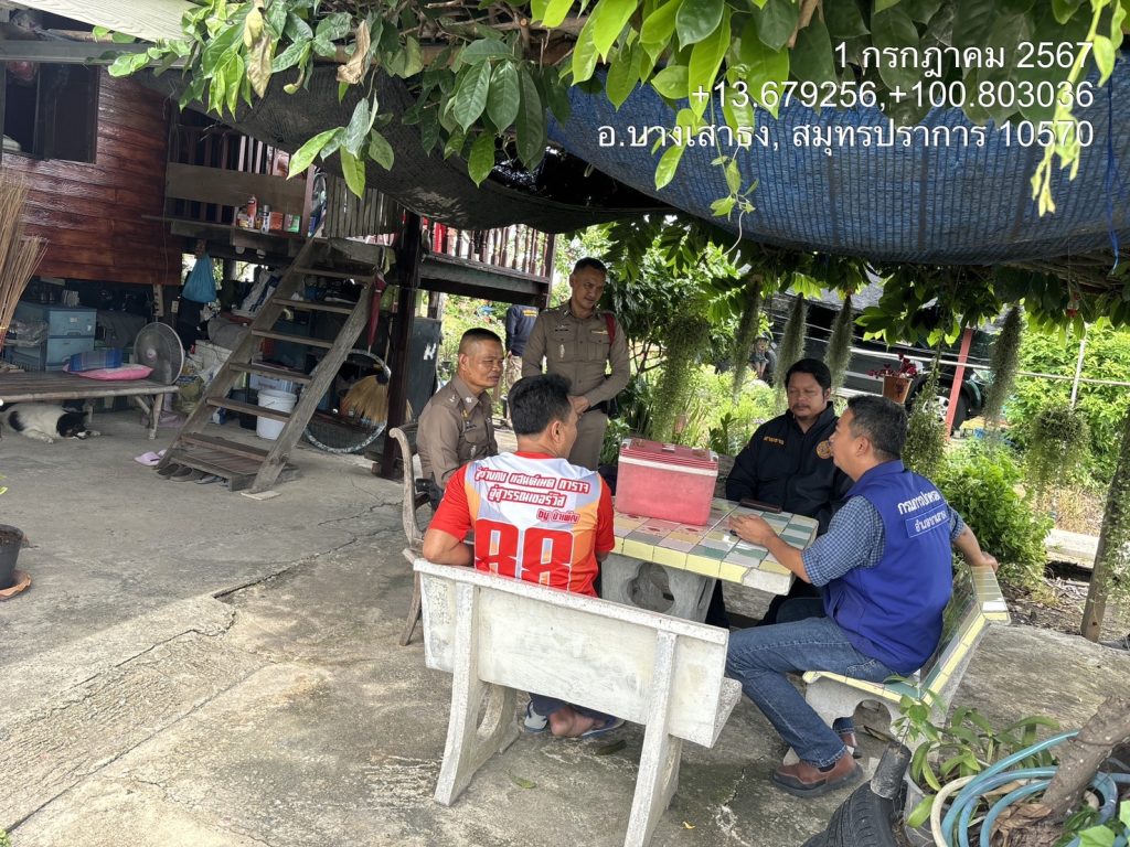 วันที่ 1 กรกฎาคม 2567 เวลา 10.30 น.ภายใต้การอำนวยการของ พ.ต.อ.โสภณ มงคลโสภณรัตน์ ผกก.สภ.บางเสาธง พ.ต.ท.ราเชนทร์ ถนัดพจนามาตย์ รอง ผกก.ป.สภ.บางเสาธง โดยมี พ.ต.ต.สุรัตศักดิ์ เสียบไธสง สวป.(ชส.)สภ.บางเสาธง ร.ต.อ.สมหมาย แก้วงาม รอง สวป.สภ.บางเสาธง พร้อมกำลังสายตรวจวัดศรี ร่วมปลัดอำเภอ เจ้าหน้าที่ฝ่ายปกครอง ผู้ใหญ่บ้าน ลงพื้นที่เตรียมความพร้อมการจัดเก็บข้อมูลประเมินความพึงพอใจในการปฏิบัติงานแก้ไขปัญหายาเสพติดตามและร่วมวางแผนในการจัดประชาคมให้ประชาชน ออกมาประชาคม หมู่ 4 ตำบลศีรษะจรเข้น้อย อำเภอบางเสาธง จังหวัดสมุทรปราการ