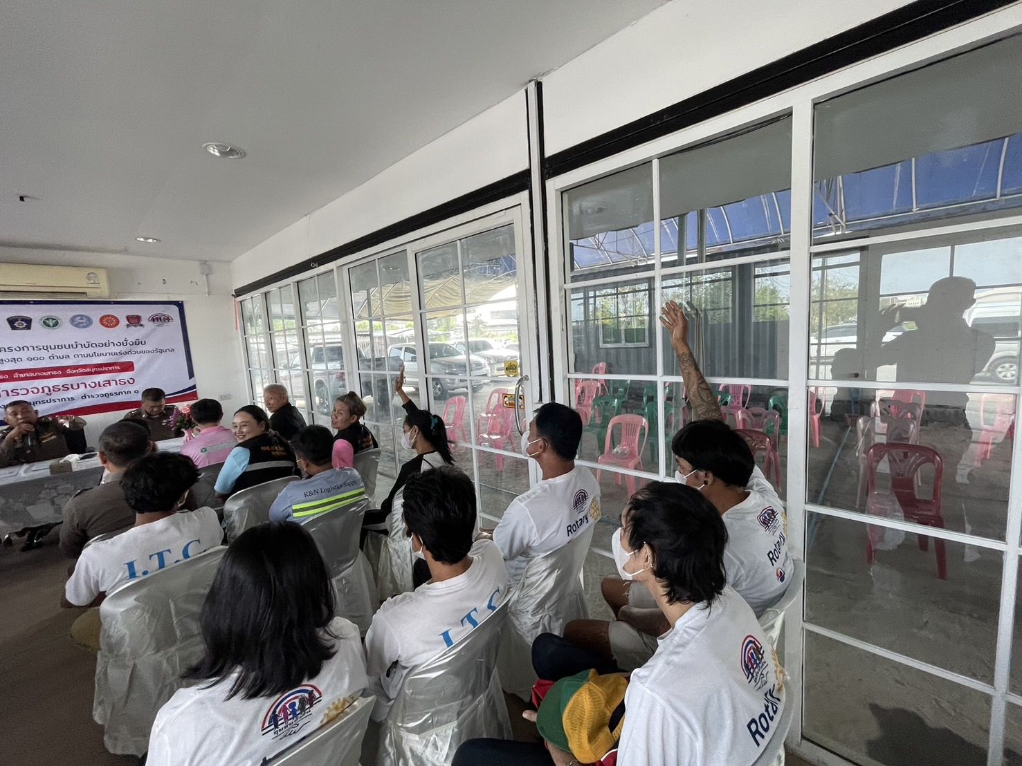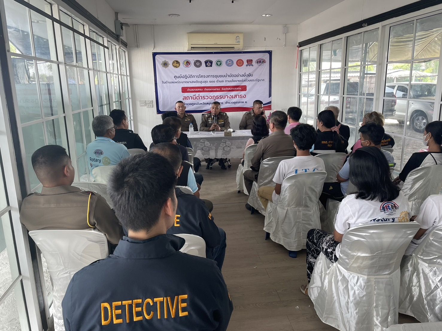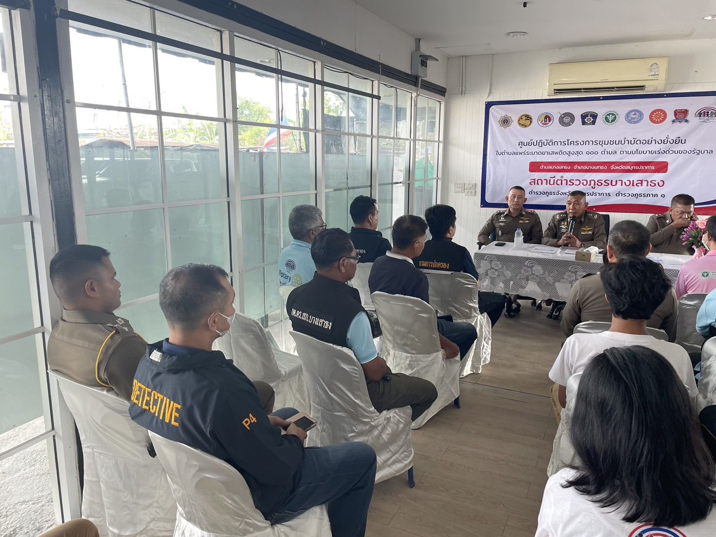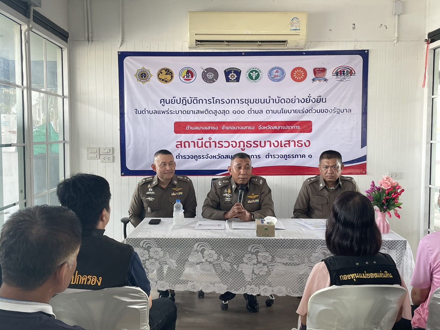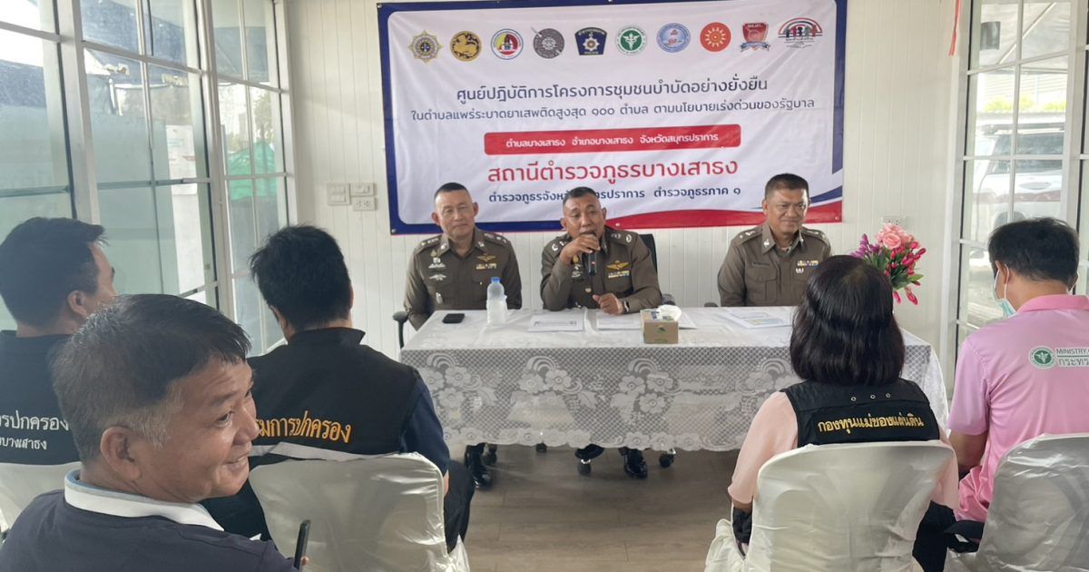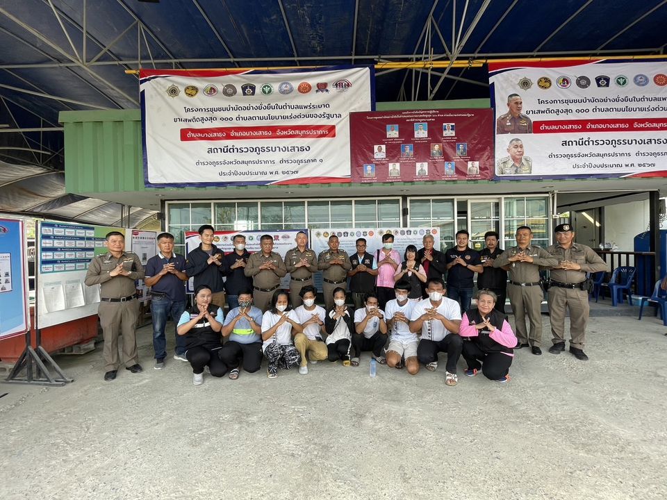 พร้อมชุดปฏิบัติการชุมชนยั่งยืน สภ.บางเสาธง และภาคีเครือข่ายให้การต้อนรับ