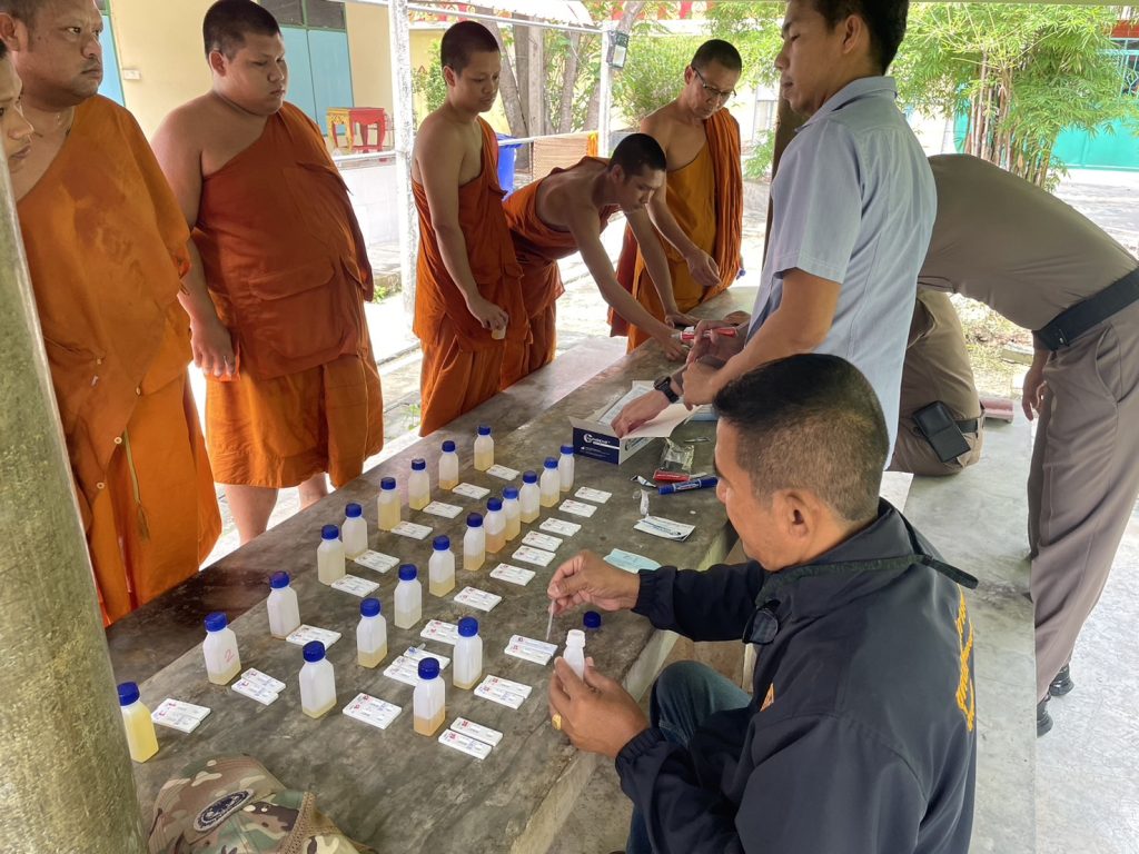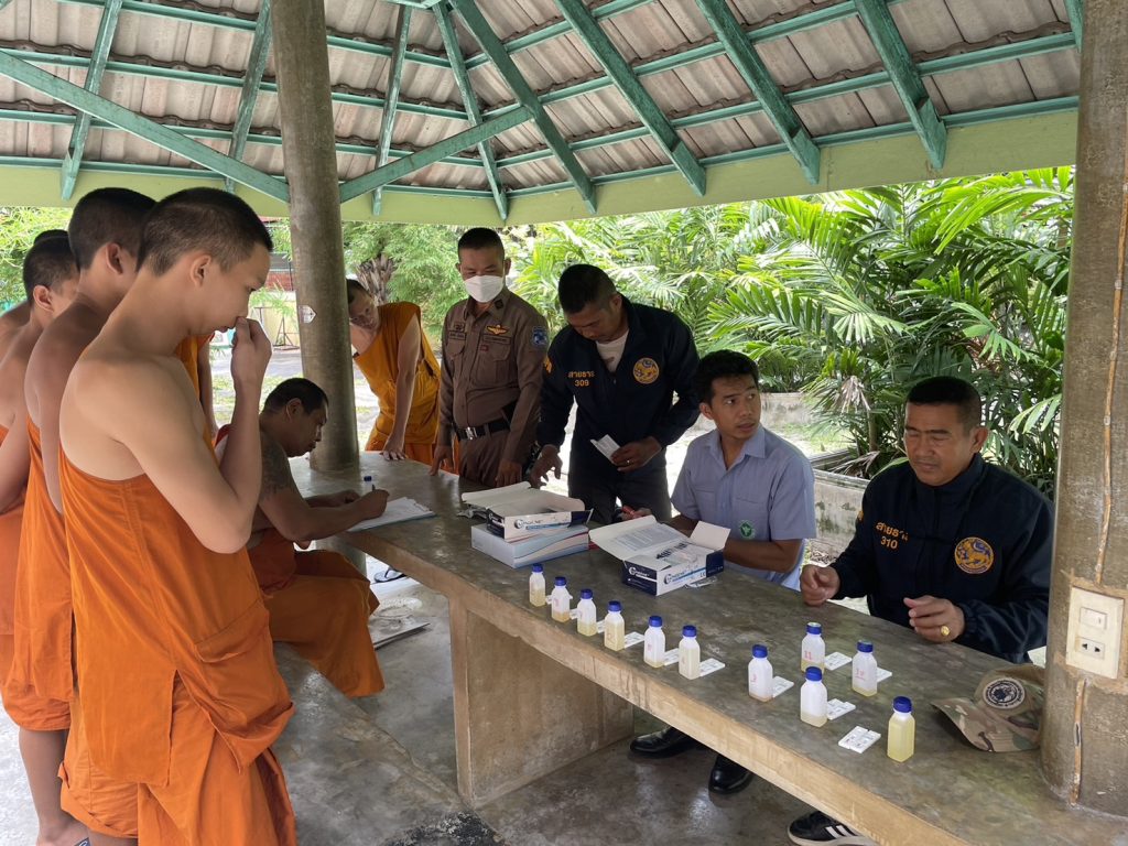– ได้ลงพื้นที่วัดศรีวารีน้อยเพื่อ X-ray ค้นหาผู้เสพฯ โดยทำการตรวจปัสสาวะพระภิกษุ สามเณรและบุคลากรภายในวัดศรีวารีน้อย ตามโครงการวัดสีขาว