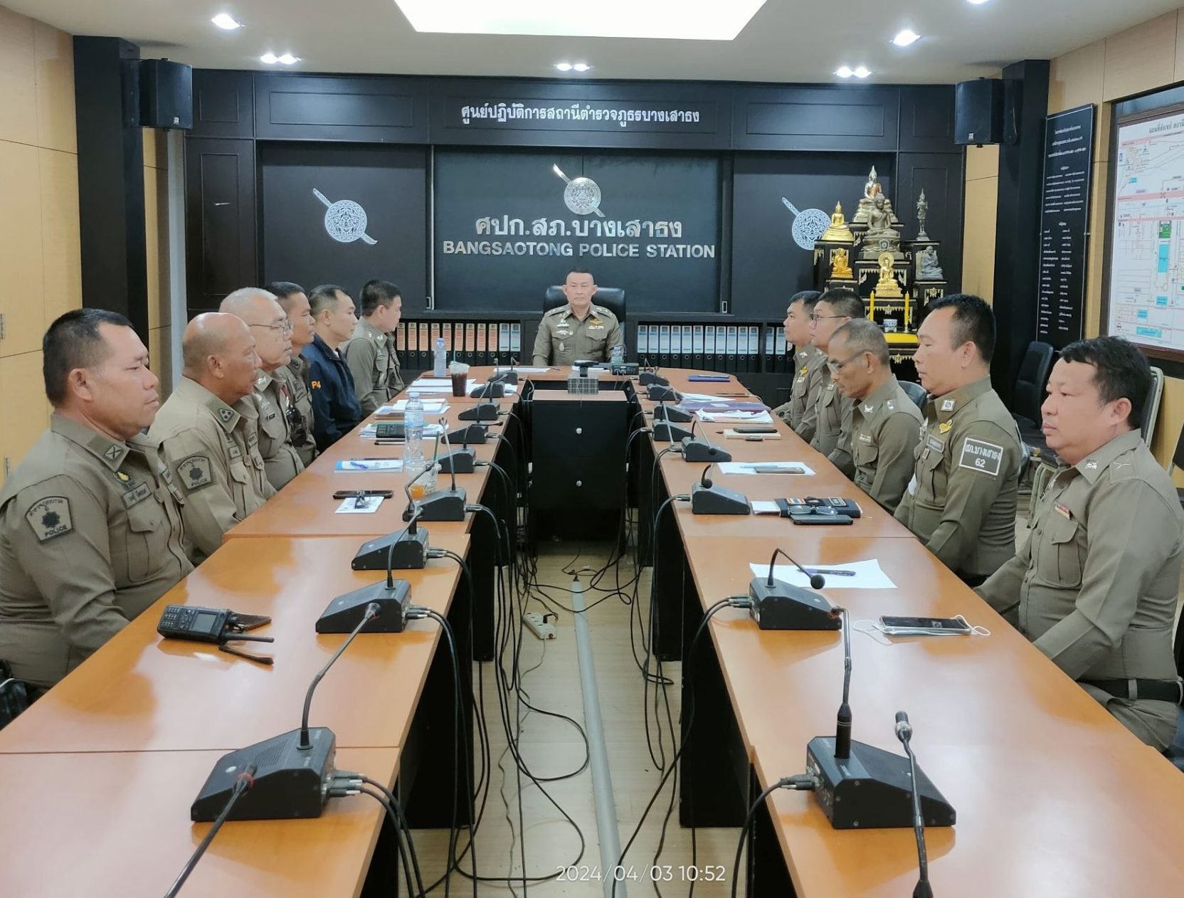 วันที่ 3 เม.ย.67 เวลา 10.30 น. พ.ต.อ.โสภณ มงคลโสภณรัตน์ ผกก.สภ.บางเสาธง พร้อมหัวหน้างานทุกสายงาน ข้