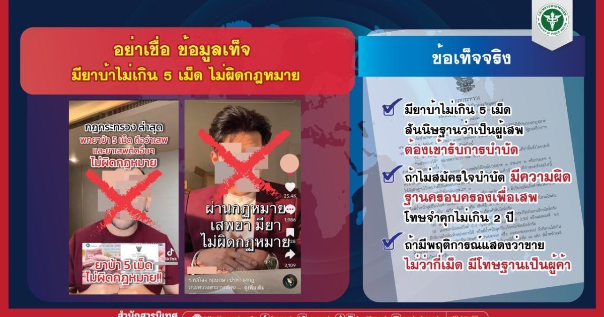 ครม.เคาะแล้ว กฎหมายครอบครองยาบ้า 5 เม็ด ถือเป็นผู้เสพ