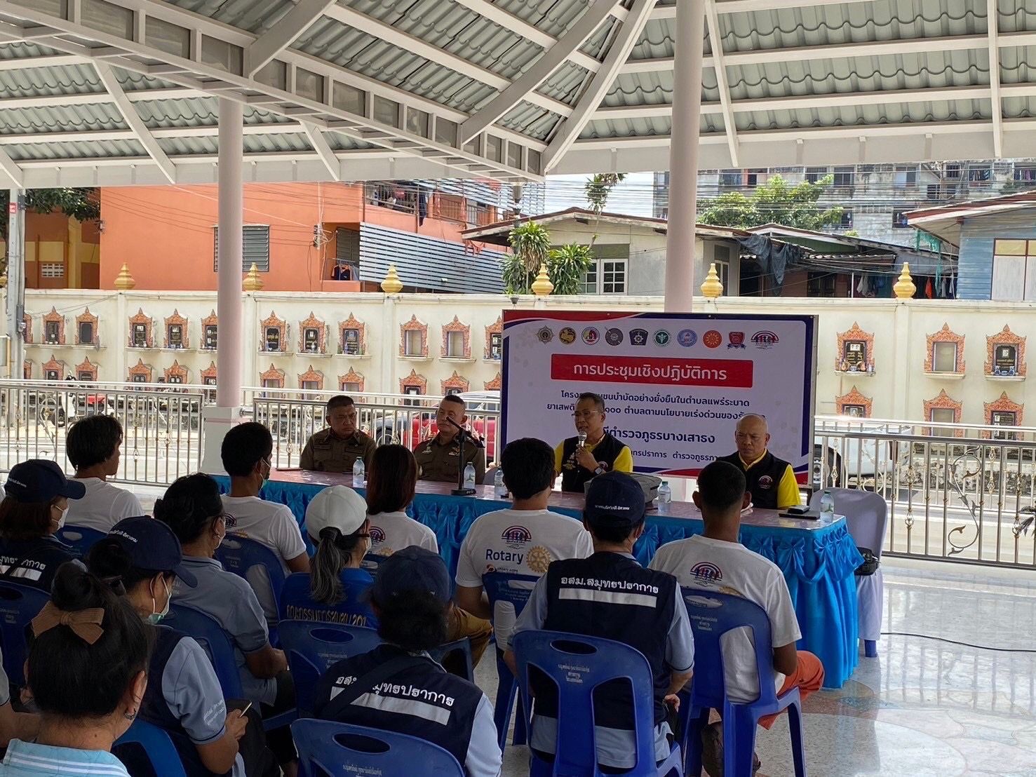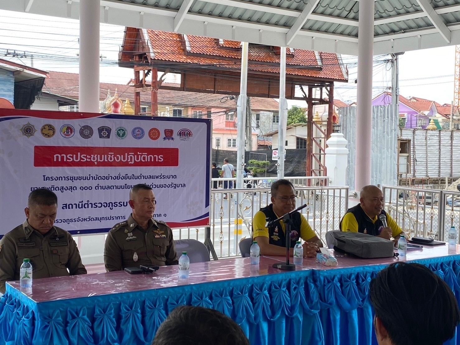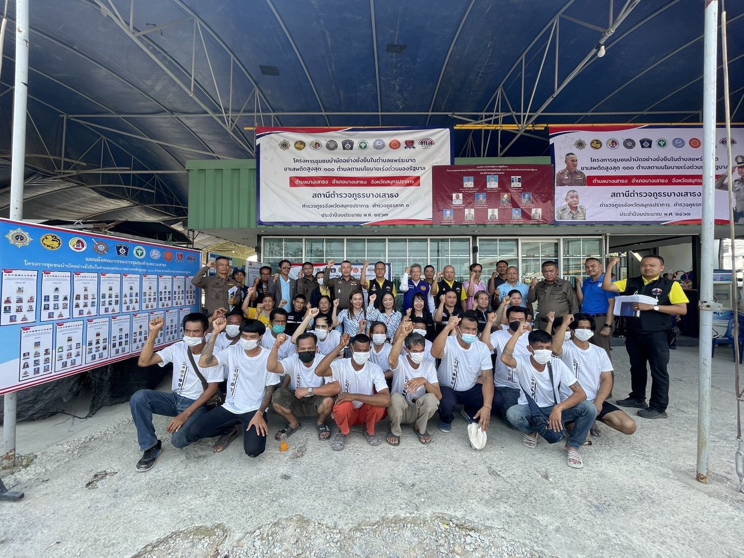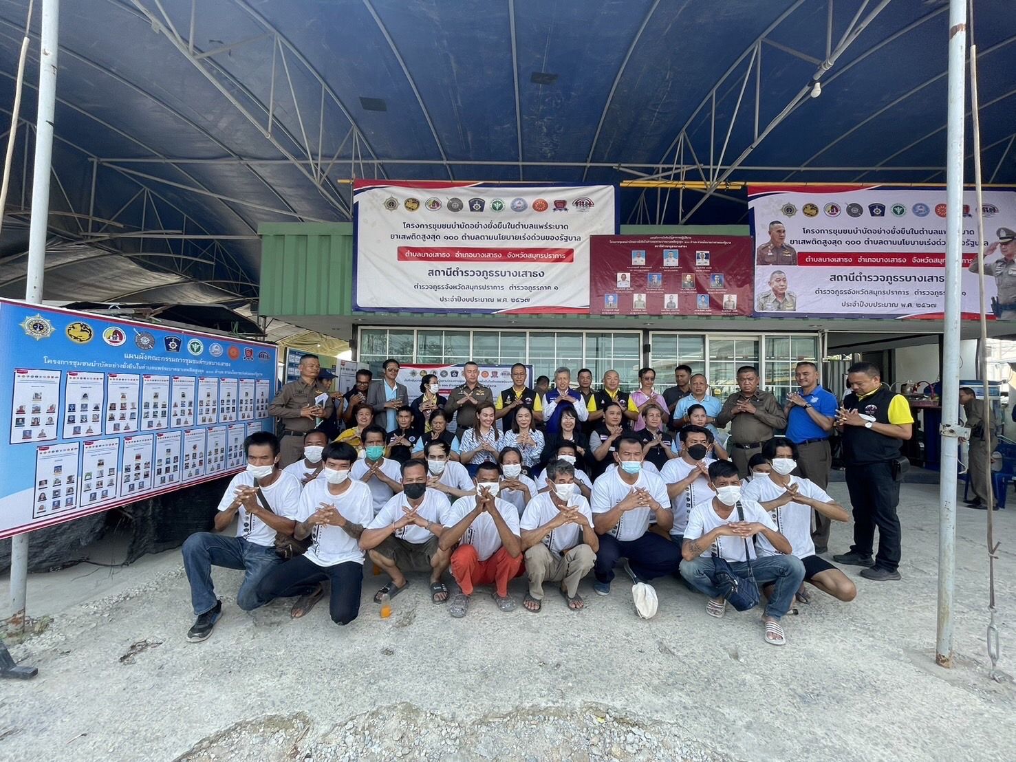 วันที่ 26 ก.พ. 67 เวลา 10.00 น. พล.ต.ท.นพดล ศรสำราญ ที่ปรึกษา ป.ป.ส./ที่ปรึกษา บช.ปส. พร้อมคณะกรรมการตรวจประเมินสรุปผลการตรวจและให้คำแนะนำ ในการดำเนินงานโครงการชุมชนบำบัดอย่างยั่งยืนในตำบลแพร่ระบาดยาเสพติดสูงสุด 100 ตำบลตามนโยบายเร่งด่วนของรัฐบาล ในพื้นที่ ต.บางเสาธง อ.บางเสาธง จ.สมุทรปราการโดยมี นายศรายุทธ ไชยกอง นายอำเภอบางเสาธง พ.ต.อ.โสภณ มงคลโสภณรัตน์ ผกก.สภ.บางเสาธง , พ.ต.ท.ราเชนทร์ ถนัดพจจนามาตย์ รองผกก.ป.ฯ , พ.ต.ท.ธีรพันธ์ ทบสมัย สวป.ฯ , พ.ต.ต.สุรัตศักดิ์ เสียบไธสง สวป.(ชส.)ฯ พร้อมชุดปฏิบัติการชุมชนยั่งยืน และข้าราชการตำรวจ สภ.บางเสาธง , กต.ตร. สภ.บางเสาธง , ฝ่ายปกครอง , องค์กรปกครองส่วนท้องถิ่น , สาธารณสุข , พัฒนาชุมชน , ผู้นำชุมชน , ภาคีเครือข่ายทั้งภาครัฐและเอกชน ให้การต้อนรับ โดยตรวจเยี่ยมชุมชนดังนี้