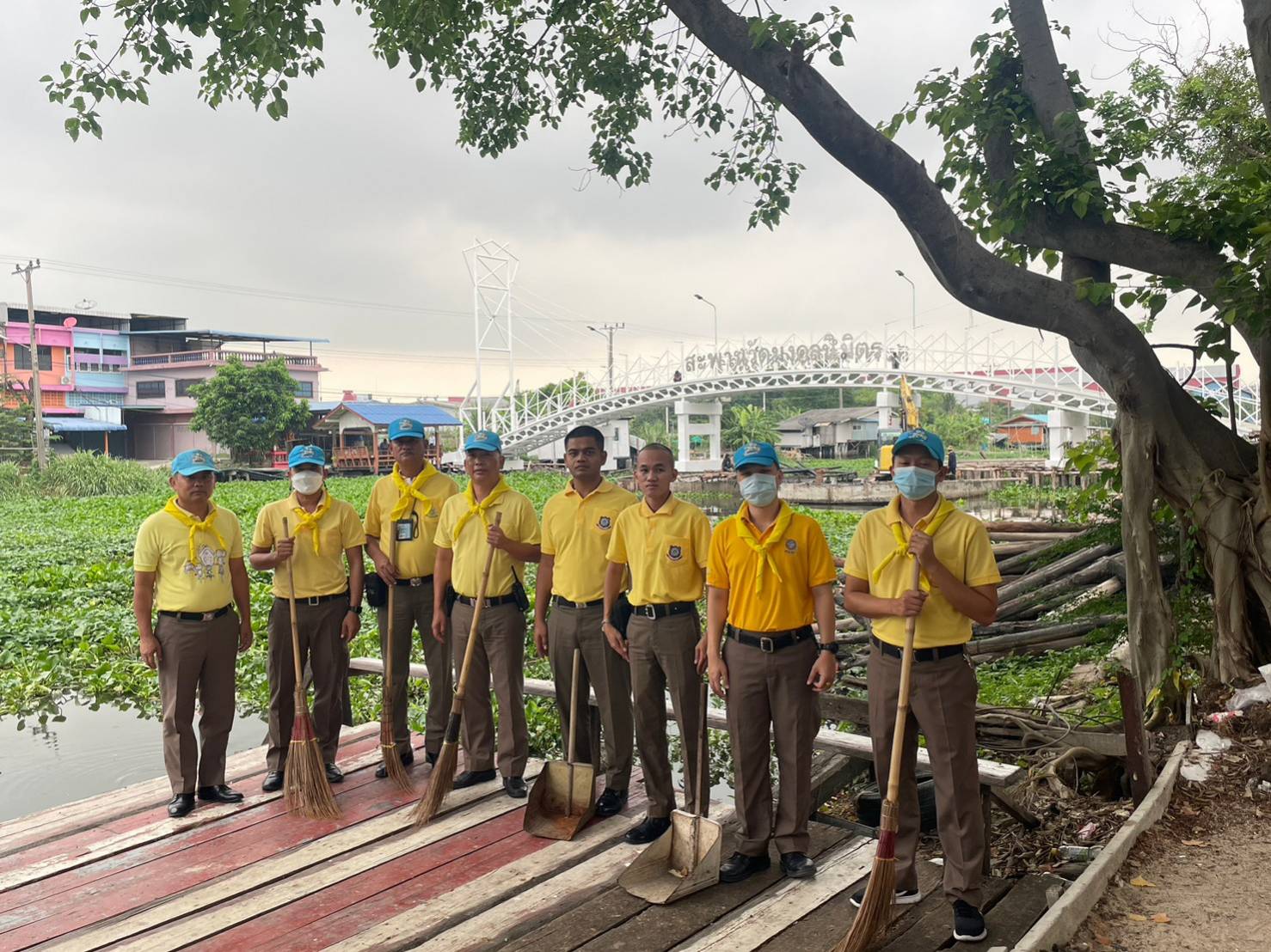 จิตอาสา พ.ต.อ.โสภณ มงคลโสภณรัตน์ ผกก.สภ.บางเสาธง พ.ต.ท.สันติ พงษ์สระพัง สว.อก.สภ.บางเสาธง &nbs
